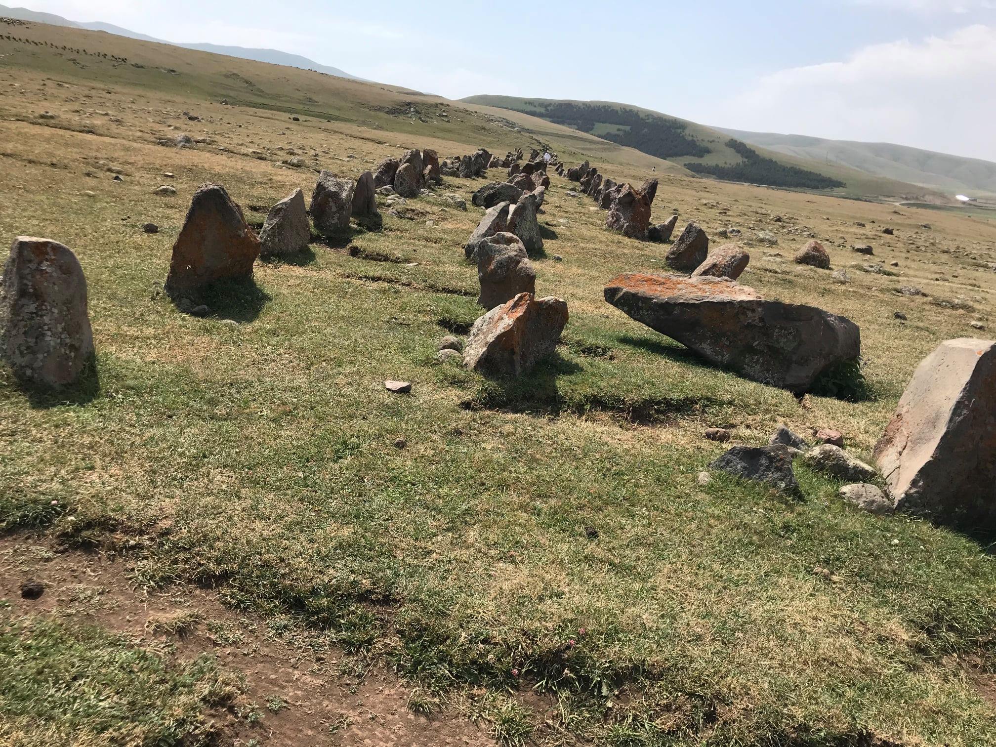 Мегалитический памятник у села Арташен состоит из двух рядов базальтовых камней, установленных под определенным углом друг к другу. Каждый ряд, в свою очередь, состоит из менгиров, расположенных в 3 ряда параллельно друг другу, на высоте 2060 м над уровнем моря.