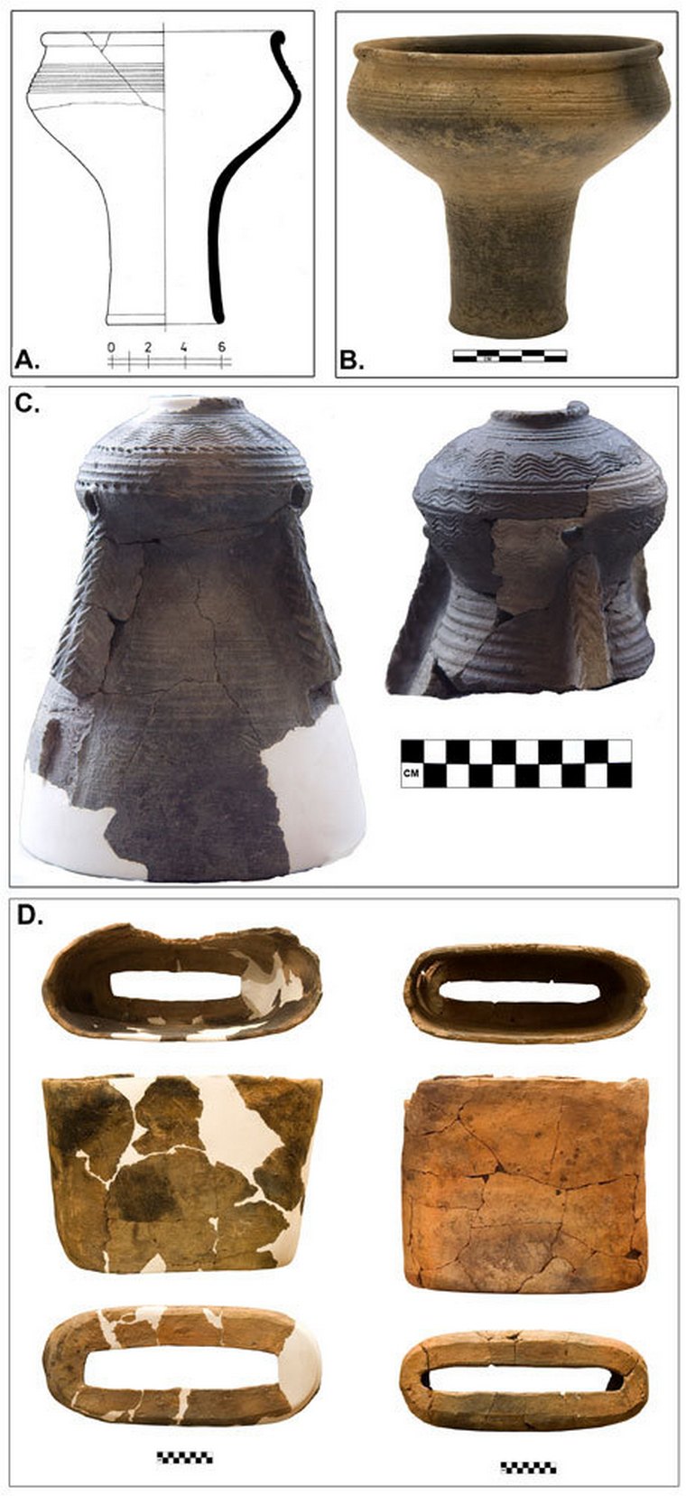 Каждая из трех святилищ состоит из одной комнаты с глиняным бассейном, заполненным золой и керамическими сосудами. Были обнаружены самые разнообразные артефакты, в том числе глиняные идолы с рогами, штамповые печати, кадилы, используемые для сжигания веществ, и огромное количество костей животных с маркировкой на них.