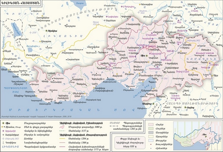 В административно-территориальном отношении Киликия делилась приблизительно на тридцать гаваров . Часть этих гаваров, а также крупные города входили в состав домена; другую часть составляли владения крупных феодалов, вассалов короля. Таким образом, существовали гавары и города, которые подчинялись непосредственно королю и управлялись назначенными им чиновниками.