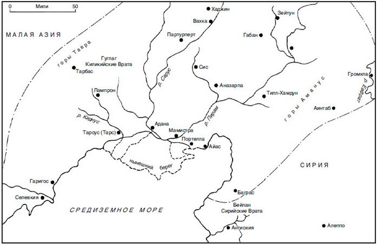 Киликия – край, имевший огромное стратегическое значение. Она протянулась вдоль берегов Средиземного моря к югу от горных массивов Тавра и Анти-Тавра и включала в себя залив Александретту (нынешний залив Искандерун) и такие города, как, например, Тарс, родина святого Павла.