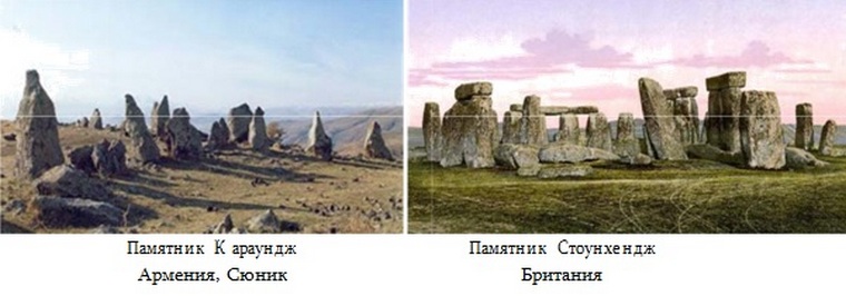 Отметим также сходство наименований и предназначения древниx памятников-обсерваторий – армянского Караунджа (Karahung, середина V тысячелетия до н.э.), и британского/кельтского Стоунxенджа (Stonehenge, середина III тысячелетия до н.э.), которое также свидетельствует о давних связях Армянского нагорья с кельтскими племенами81.