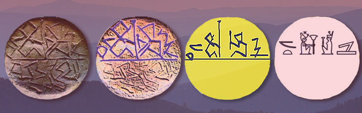 Вероятно, впоследствии некоторые знаки стерлись или плохо видны, и поэтому они не учтены при исследовании. Те же пиктографические знаки выглядели бы как иероглифическая надпись на илл. Г, если бы были написаны позднее и более стилизованным пиктографическим шрифтом, который известен из пирамидных текстов Древнего Египта. Здесь дан его компьютерный каллиграфический вариант.
