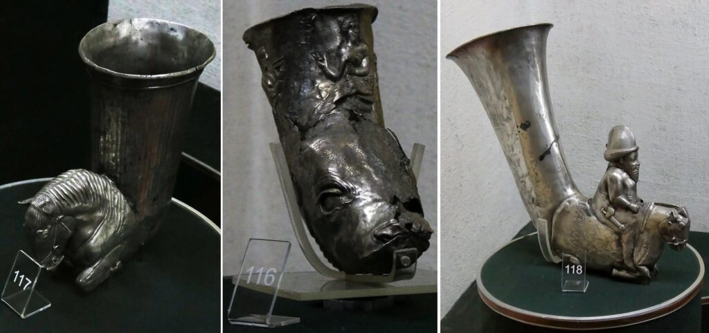 Широкий реестр подобных предметов разных эпох представлен в экспозиции и в запасниках ГИ музея Армении. Многообразие посуды (медь, серебро, золочение) — подносы, кубки, блюда, сосуды, светильники, маслёнки разных размеров, банные тазы и кувшины гигиены и мн. др. образцы изделий арм. производств поражает.