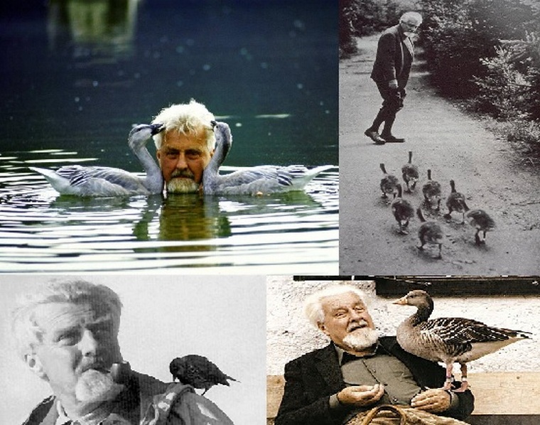 Плавая в пруду с домашними утками, которых сам выращивал, юный Конрад дивился их грации. Редкая наблюдательность позволила ему установить социальные, то есть обусловленные средой связи в опознании друг друга. Так, позаимствовав однодневного утенка у соседа, к несказанной радости своей Конрад обнаружил, что тот следует за ним повсюду, как за уткой. С той поры водоплавающие птицы становятся его страстью.