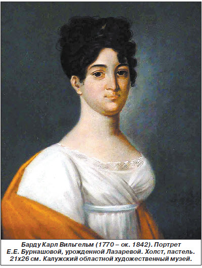 Художник Карл Вильгельм Барду, родом из Берлина, писал пастелью, в основном портреты, подвизаясь в Петербурге, Казани, но более всего в Москве, где создал обширную портретную галерею именитых москвичей. Облик многих из них известен нам только по картинам Барду. На одном из его холстов изображена Екатерини Екимовна