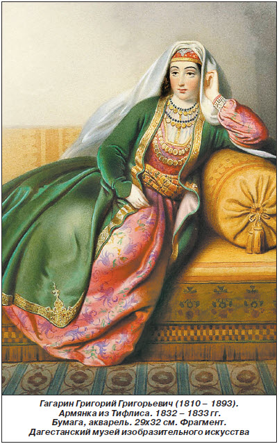Автор «Армянки» – князь Григорий Гагарин – родился в Санкт-Петербурге в семье видного дипломата. С 1816 г. жил за границей, с 1822 г. – в Риме, где брал уроки у Карла Брюллова. В 1848 – 1854 гг. жил в Тифлисе. По своей творческой судьбе – типичный аристократический дилетант-самоучка, Григорий Гагарин показал себя виртуозным рисовальщиком и акварелистом. Исполнил целый ряд живых и ярких путевых, этнографически-пейзажных циклов.