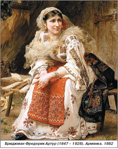 Пик карьеры Фредерика Бриджмана, американского художника-ориенталиста, пришелся на 1881 год, когда была проведена его персональная выставка в American Art Gallery, на которой было представлено более 300 его работ. Очаровательная «Армянка», пожалуй, самая удачная его работа на армянскую тематику.