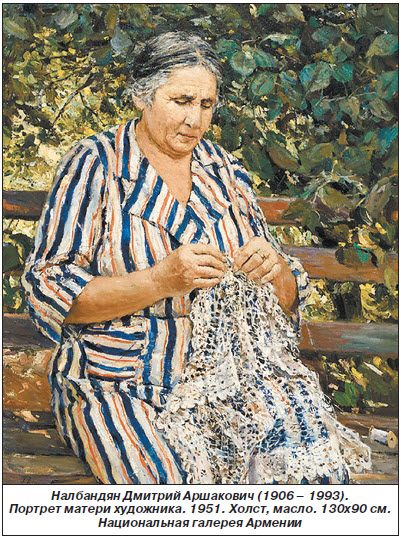 Дмитрий Налбандян родился в Тифлисе в семье рабочего железнодорожных мастерских. Художник создал обширную портретную галерею. На его полотнах – рабочие, труженики сельского хозяйства, воины, ученые, деятели культуры и искусства, вожди Советского государства. Верхом его творчества следует признать портрет матери художника – Айкануш Карапетовны Налбандян.