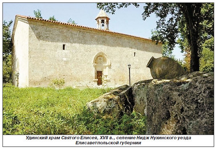 Население составляют удины (православные и григориане, говорят между собой по-удински), армяне, татары (в 1936 г. кавказские татары или тюрки Азербайджанской ССР были переименованы в азербайджанцев. – М. и Г.М.) и евреи… Сельский суд состоит из 5 лиц: по 1 от православных, татар, евреев и 2 от григориан. Письменная часть ведется писарем на армянском языке.