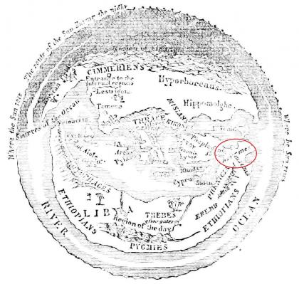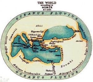 Карта Земли, составленная по описанию Гомера (836-780 гг. до н.э.) – древнегреческим поэтом, автором знаменитых «Одиссеи» и «Илиады», принадлежит к числу наиболее ценных документальных данных о восприятии мира в XII-VII вв. до н.э. (любопытно отметить, что на этой карте Армения названа страной Аримов, а не Урарту – ассирийским термином, являющимся, в действительности, эквивалентом названия “Армения”).