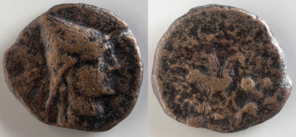 На монете опубликованной ниже, изображен царь Софены Аршам I (ок. 255-225 до н. э.), в остроконечной тиаре с драпировкой, покрывающей шею. На реверсе изображен всадник, идущий вправо, с копьем и жертвой на земле.