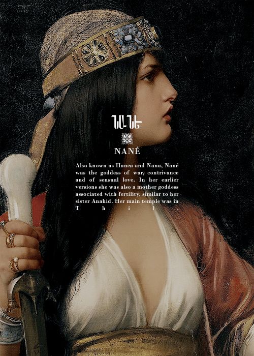 Нанэ: богиня, похожая на греческую Афину, Нанэ управляет военной стратегией и изобретениями и, как и Анаит, связана с материнством и чувственной любовью.