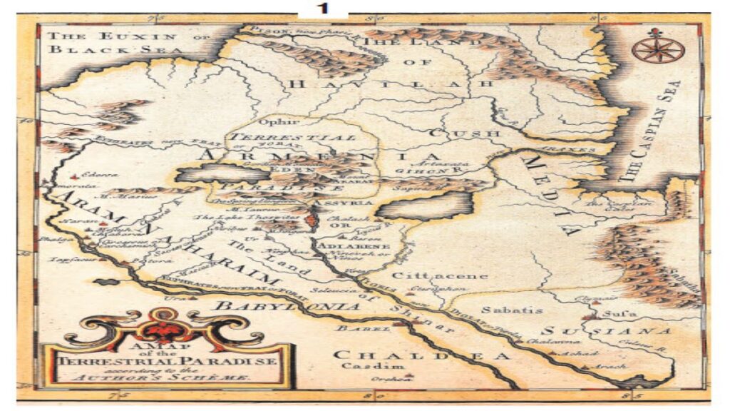 Kарта, которая называется “Земной рай” – Эдем, основана на средневековых мифах и религиозных традициях, согласно которым Земной рай находился у Междуречья.