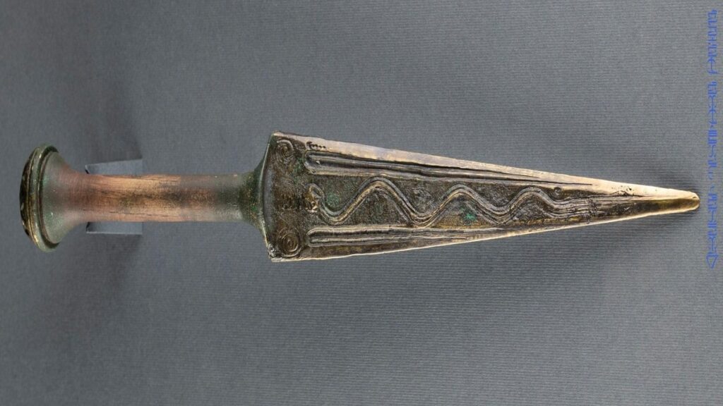 Изысканность и внимание к деталям, использованные при создании этого двустороннего бронзового кинжала, свидетельствуют о передовых для того времени металлургических навыках, указывая на высокий уровень цивилизации.
