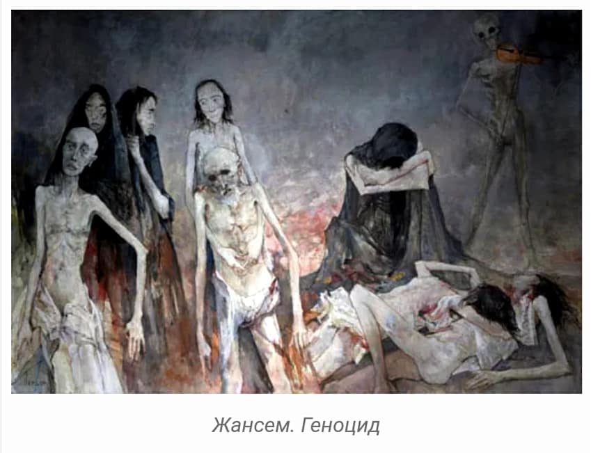 Но тема геноцида до самой смерти в 2013г. не давала покоя одному из самых известных и востребованных художников современости. Неслучайно первые работы в качестве самостоятельного художника Жансем начинал с армянских национальных мотивов («Армянка», «Армянская свадьба», «Похороны» и др.).