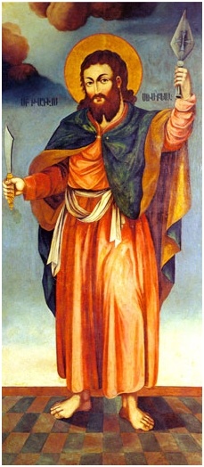 Апостолы Фаддей и Варфоломей наиболее почитаемы в Армянской Апостольской Церкви. Считается, что именно они были первыми проповедниками христианства в Армении. Фаддей держит в руках Копью Судьбы, которым, по легенде римский легионер пронзил ребро Христа.