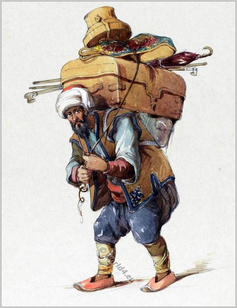 Нужно понаблюдать за носильщиком, взбирающимся на холм Пера (ныне Бейоглу – прим.), чтобы понять, что имеет в виду Библия в её восточной метафоре, когда она говорит: «носите бремена друг друга». Когда наступает его день празднества, он исполняет странную музыку на старой свирели и танцует на улицах Пера как слон среди посуды.»