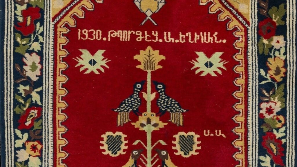 Редкий армянский ковер, сотканный в Агре, Индия, с надписью и датой 1930 года. Надпись гласит: “1930.Թ ԳՈՐՁԵՑ․Ա․ԵՂՒՅԱՆ․ “1930.T Гордзец А. Егян” Литера Т (Թ) после 1930 означает Твакан (дата). «Гордзец» означает сотканный. т.е. соткано А. Егяном». Также на ковре множество армянских инициалов.