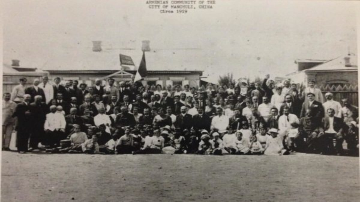 На фотографии, сделанной примерно в 1919 году, запечатлена армянская община Маньчжурии, на которой изображено около 150 человек всех возрастов, гордо позирующих с армянским трехцветным флагом, что свидетельствует о размерах общины в городе.