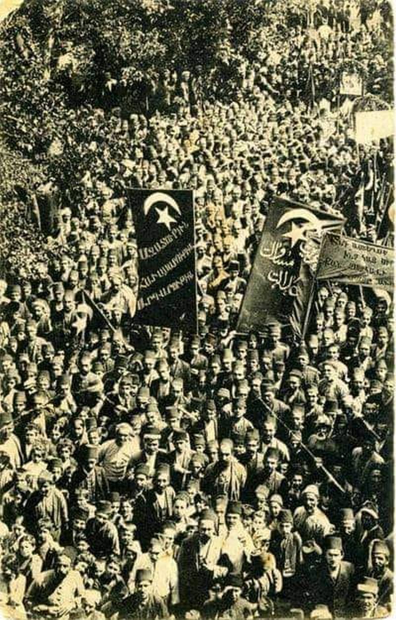 Это уникальная фотография сделана в дни младотурецкой революции 1908 года, когда армяне с энтузиазмом встретили младотурецкую революцию подкрепленную фальшивыми лозунгами свободы, равенства и братства.