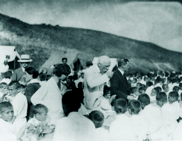 Фотопортрет норвежского полярного исследователя, великого гуманиста Фритьофа Нансена. В 1925 г. во время визита в Советскую Армению в одном из сиротских приютов Александрополя он ознакомился с условиями ухода за детьми. Было время обеда.