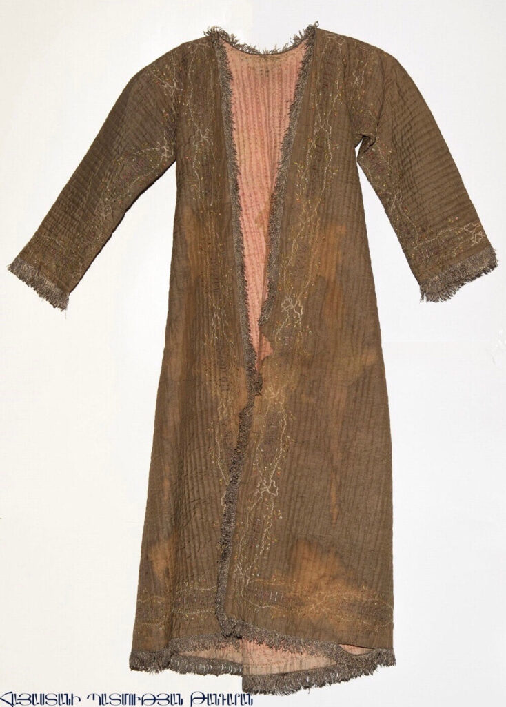 На выставке под названием: “Эпизоды идентичности – Тараз” можно увидеть представленную на фотографии, опубликованный ниже, образец верхней одежды – Хрха,которую носили в армянском царстве – Киикия.