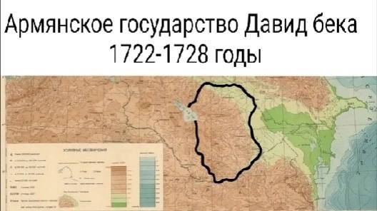 Армянское государство Давид-Бека. 1722-1728 годы. Включало в свой состав территорию Зангезура, Нагорного Карабаха, восточного побережья озера Севан, а так же районы вокруг города Гандзак (Гянджа), вплоть до нынешнего Мингечаура.