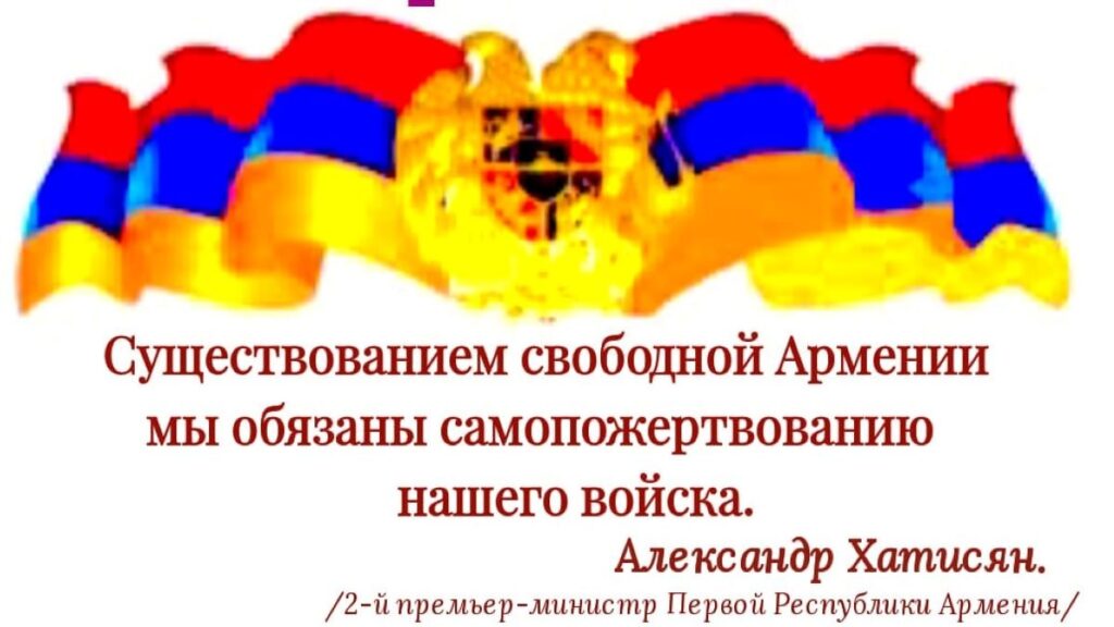 После почти 700-летнего отсутствия своего государства, в мае 1918 года, отстояв силой оружия и доблестью своих сынов право на существование в битвах при Баш-Апаране, Каракилисе, Сардарабаде (Сардарапат); сумев пронести через века и сохранить свою национальную идентичность, язык, письменность, веру, культуру, 28 мая 1918 года Армения объявила о своей независимости и восстановила государственность!