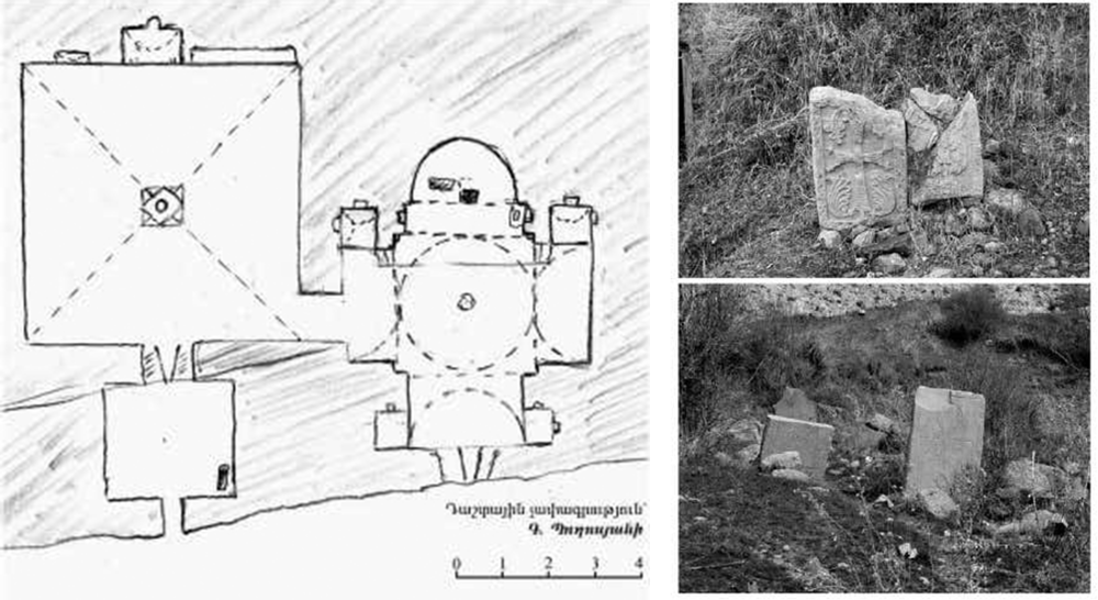 Уже в XX веке Ерванд Лалаян указывает не только на «две вырытые в скале церкви», но и на наличие пещеры, именуемой «местом отшельника», в которой есть небольшой алтарь; а также на то, что перед храмами на левом берегу речки заметны развалины церкви и следы зданий, места для хранения зерновых, развалины двух мельниц.