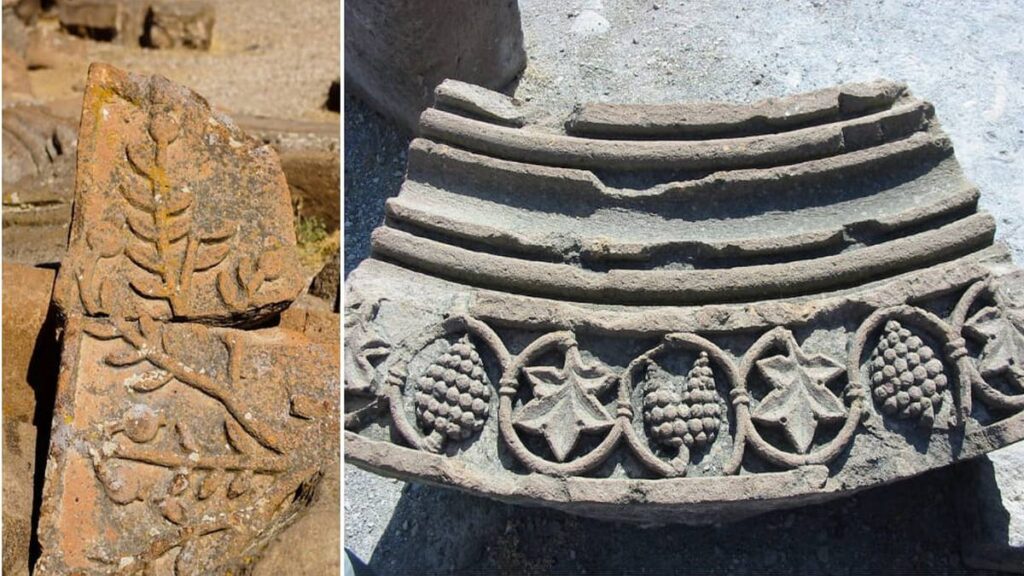 В конце VII века были воздвигнуты памятники, на стенах, по крайней мере, шести из которых гранат присутствовал как один из основных декоративных мотивов. Среди них – кафедральный собор в Талине, собор Святого Григора в Аруче, церковь Зоравар в Егварде, церковь Святого Саркиса в Артике, церковь Святого Ованеса в Сисиане и монумент в центре села Агиту.