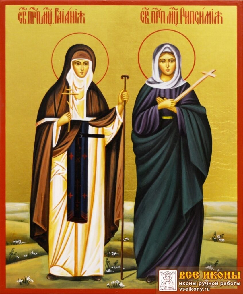 (3) Св-е Рипсимэ, Гаянэ, «дев-рипсимеянок числом 35» замучил и убил за веру в Христа царь Армении Трдат. После чего Трдат заболел. Излечил его св. Григорий Армянский «Просветитель всея Армении» («Лусаворич»-древ.арм.). Все они прославлены в лике Святых Св. ААЦ, в т.ч. Католикос Комитас построил храм во имя «Св.Рипсимэ и св. дев».