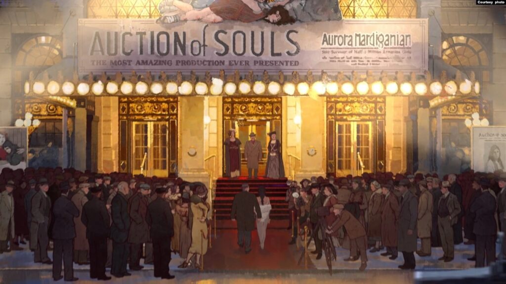 О.С.: Мы видим, как в последнее время анимация стремительно расширяет охват тематики. И все равно несколько неожиданно использование ее для рассказа о такой страшной трагедии, как геноцид армян в начале 20-го века. В вашем фильме анимация сочетается с фрагментами архивного интервью с Авророй Мардиганян и кадрами из немого фильма «Аукцион душ». Вы с самого начала решили совместить эти форматы?
