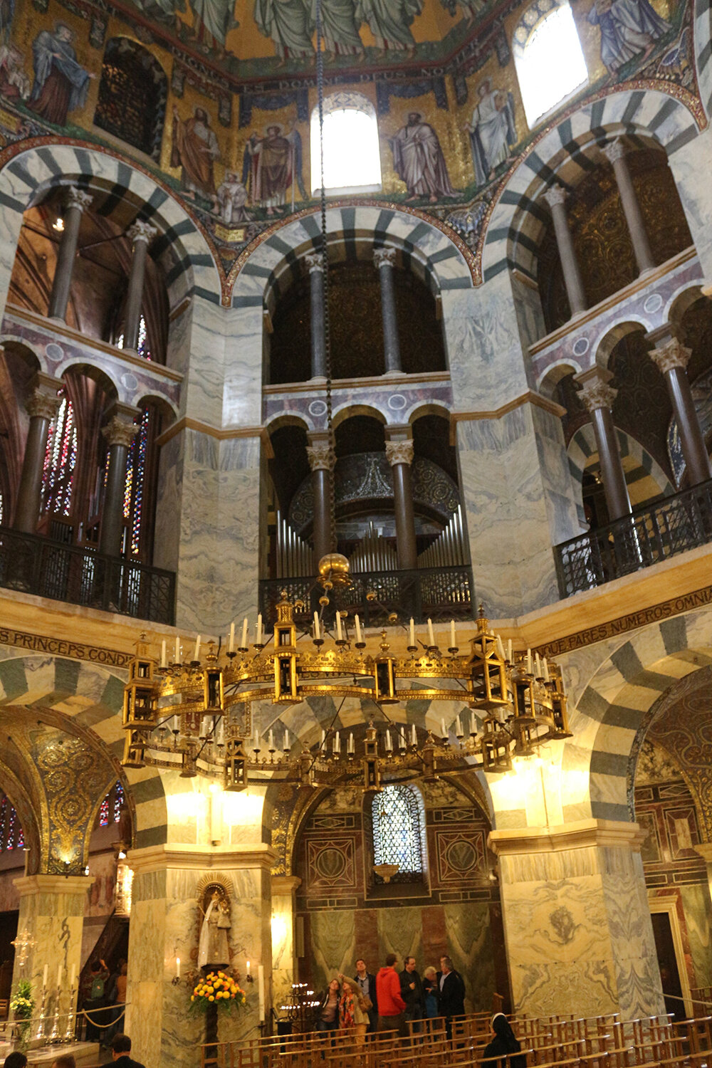 В галерее капеллы находятся мраморный трон Карла Великого, созданный по образу и подобию трона библейского царя Соломона. Довольно простой на вид, не имеющий украшений, именно он использовался для коронации всех германских императоров.