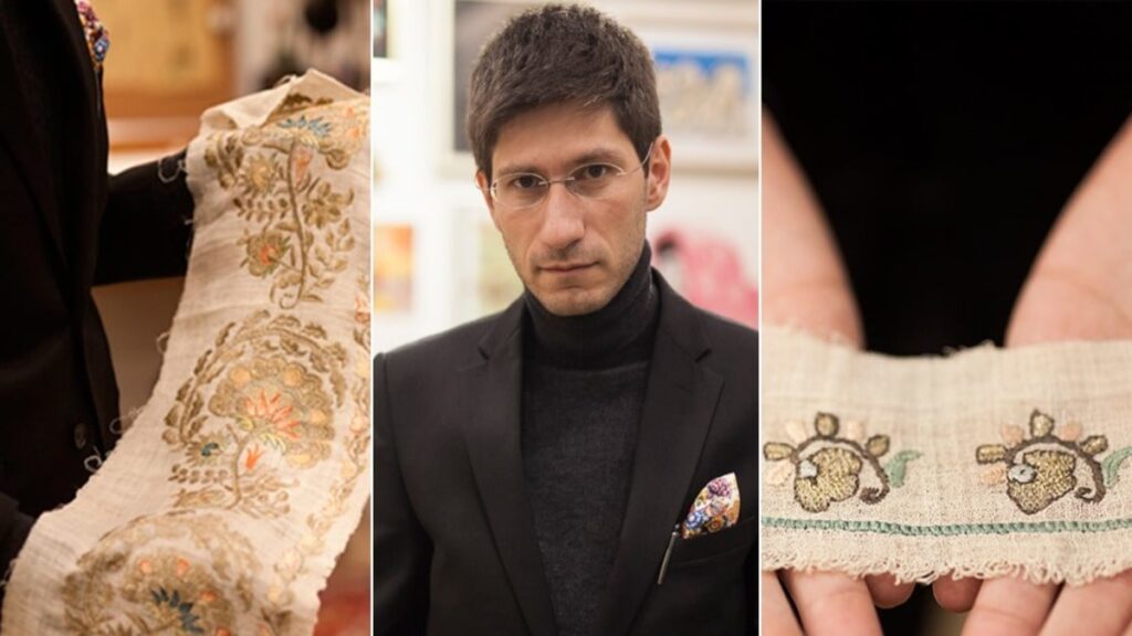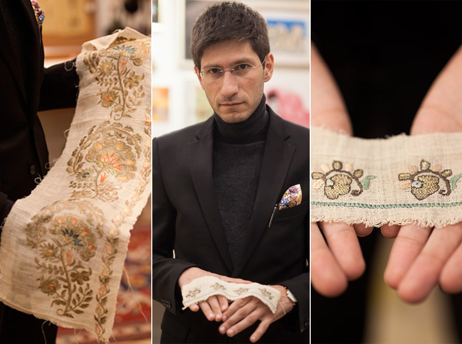 Один из выдающихся предметов коллекции – это черный шелковый халат, который был частью приданого Лиони. Халат красиво расшит, спереди изображены цветы, а сзади огромный коллаж из птиц и цветов. Узор считается вдохновленным традиционной армянской вышивкой Урфы.