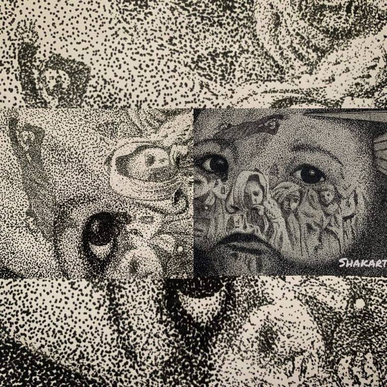 «Чтобы получить законченную картинку, художник 1,5 миллиона раз воткнул перо в бумагу. С одной стороны изображена пустыня Дер Зор, с другой – Комитас с поднятыми руками».