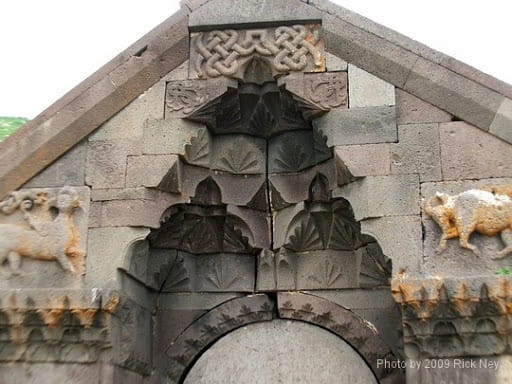 Вход украшен барельефами животных — символами рода Орбелянов, что придаёт зданию не только функциональный, но и художественный характер.