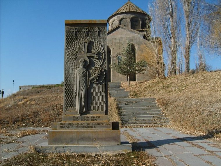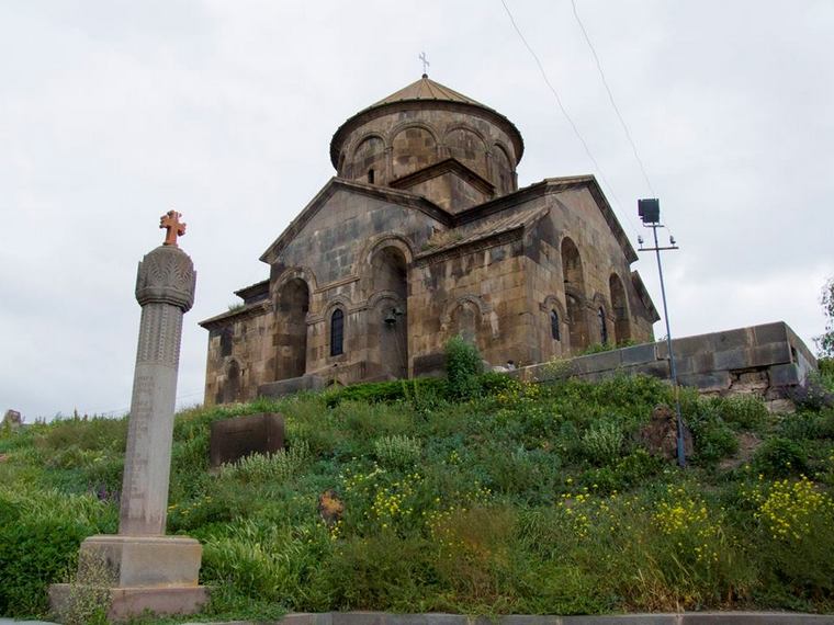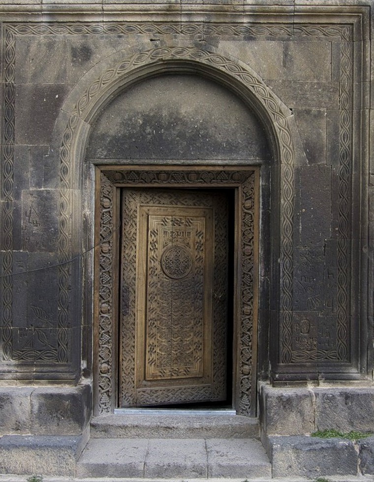Для армянской церковной архитектуры это нехарактерно, а вот для языческой – вполне. Композиционно — крестово-купольное сооружение с четырьмя прямоугольными ризницами. Два входа, южный и западный.