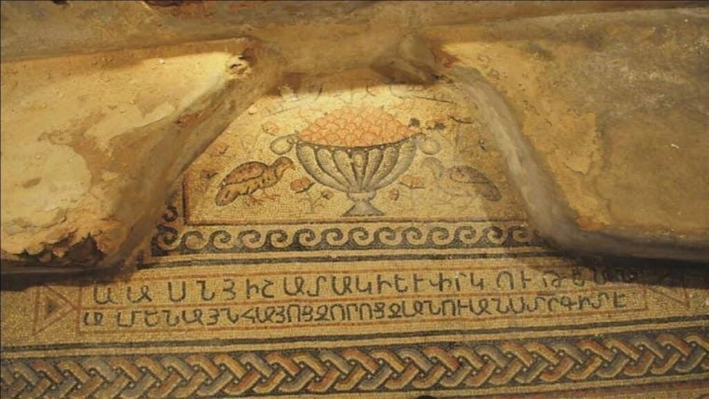 Поэтому вполне возможно, что эта мозаика является самым старым оставшимся примером армянской письменности.