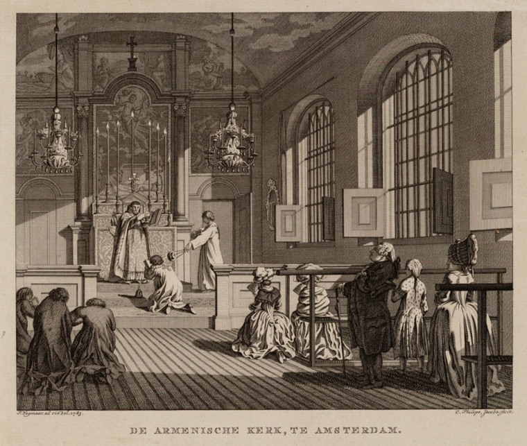 В мае 1714 года 40 армянских купцов финансировали конвертацию двух складов в армянскую церковь на Кромбоумлоте в центре Амстердама.