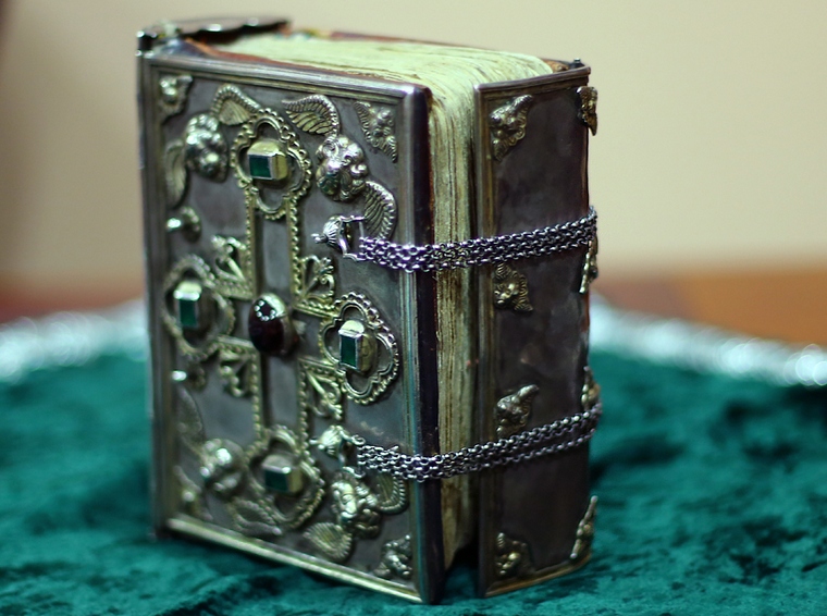Кто-то держал цветы, кто-то детские пеленки. Приблизившись, я увидел главного хранителя. Он торжественно развернул обернутый в ткань манускрипт. Затем взял младенца в руки и осторожно его наклонил над рукописью -так, что лобик коснулся серебряной поверхности оклада.
