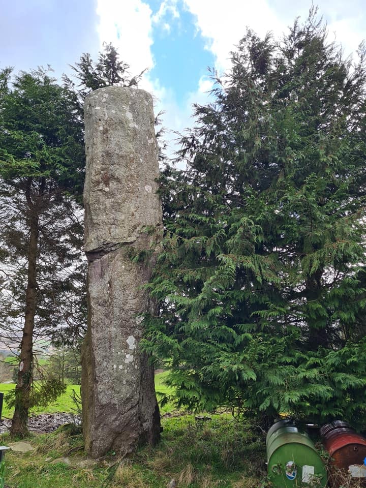 Высота огромного мегалита почти 6,5 м. Он стоит во дворе некоего фермера. Когда он упал и треснул, фермер нанял подъемный кран и вставил два стержня в середину.