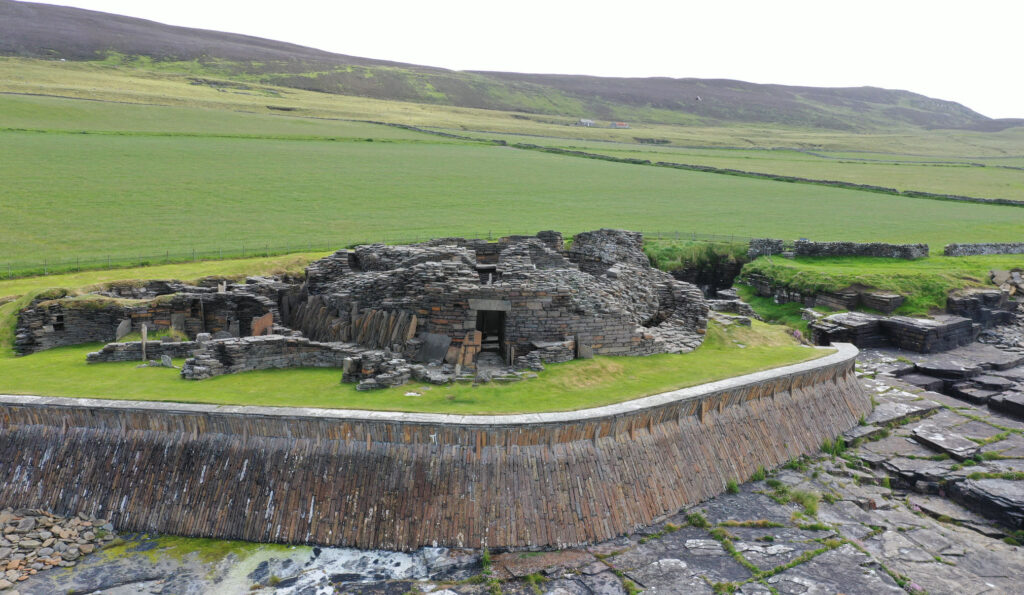 Броч был частью древнего поселения и находится рядом с могилой «корабль мертвых» в Мидхау-Каирн.